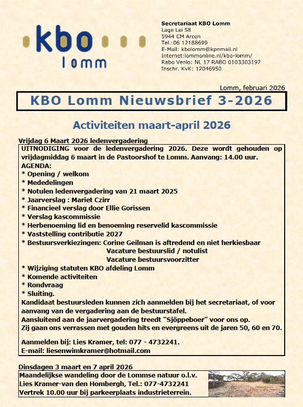 KBO Lomm Nieuwsbrief 3-2026