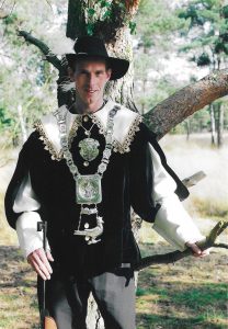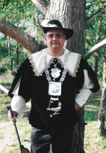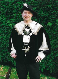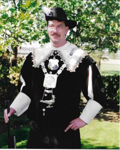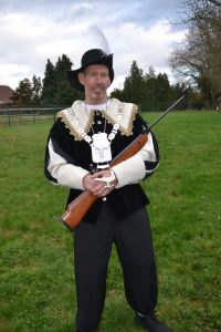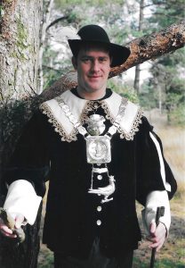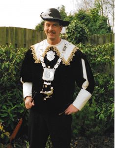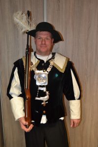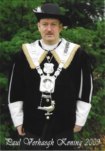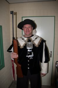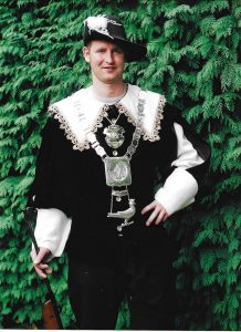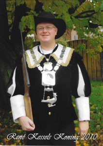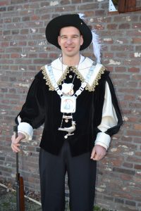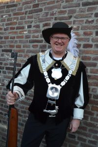 Ieder jaar op onze Gildedag gaan we koningsschieten. Degene die het schot lost waarbij de vogel omvalt, is koning.